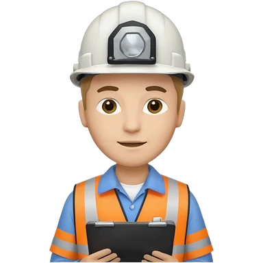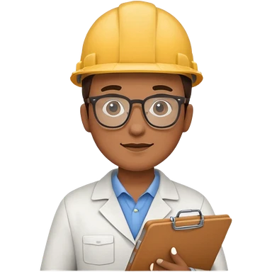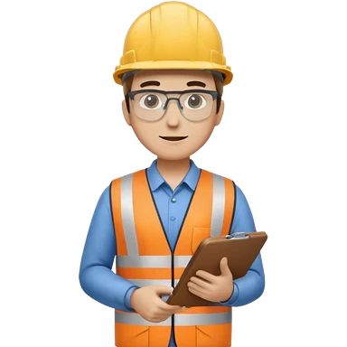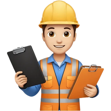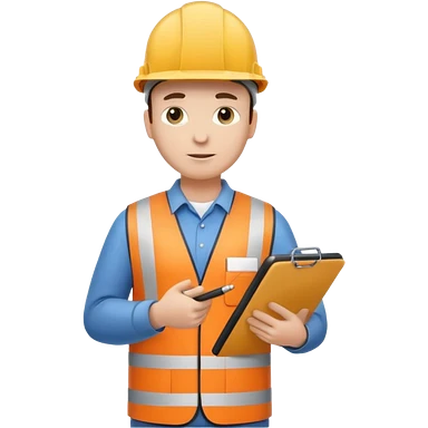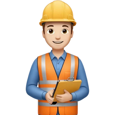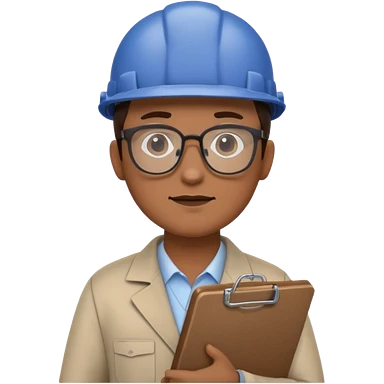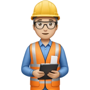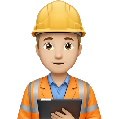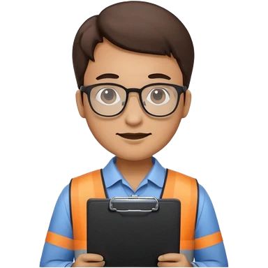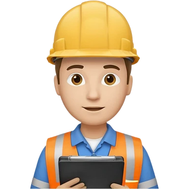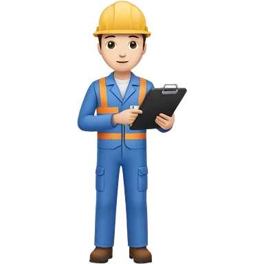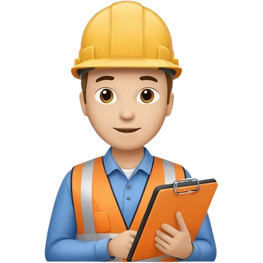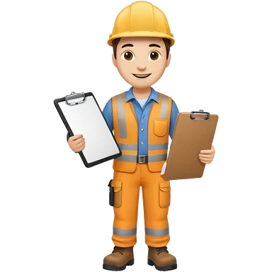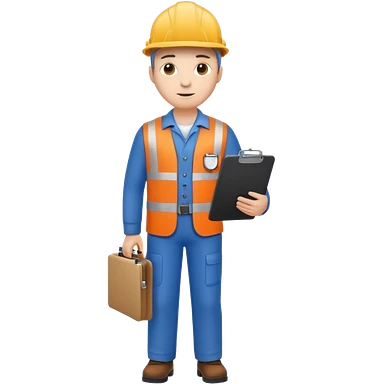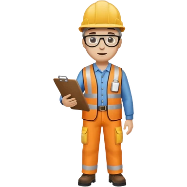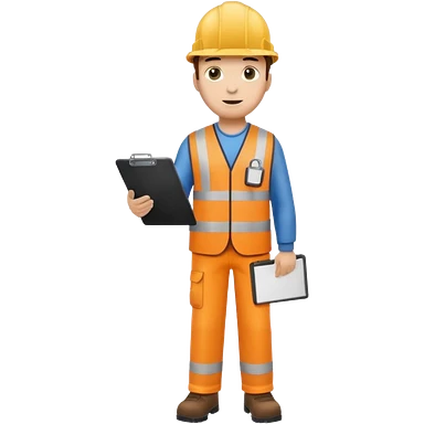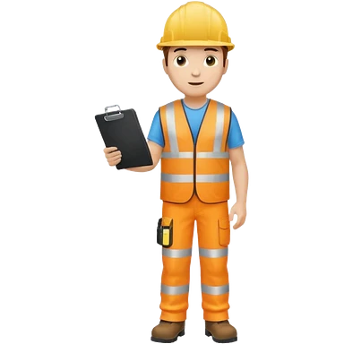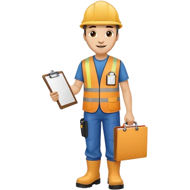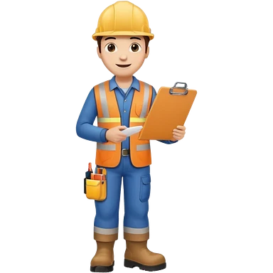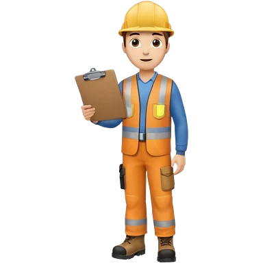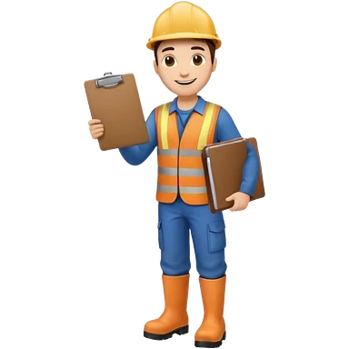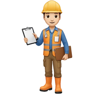 engineer standing with safety boots, holding a clipboard in one hand emoji