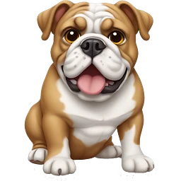 english bulldog wearing a colorful Hawaiian shirt and a dog tag that says 'chompers', emoji style emoji