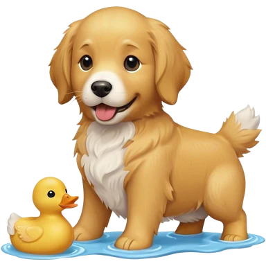 English-cream-golden-retriever with toy-pirate-duck emoji