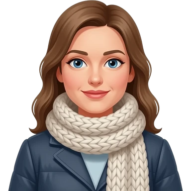 english winter woman with big purple knit scarves on neck black puffin jacket laughing emoji | AI Emoji Generator