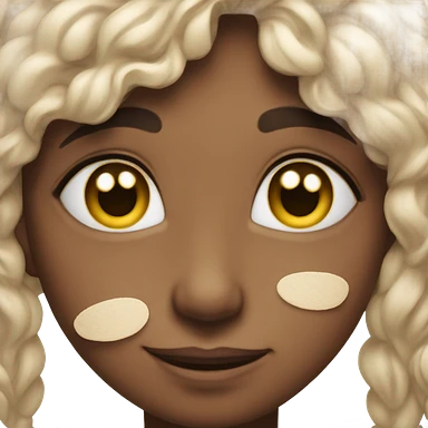 entire, white woman with straight long mid hair, dark brown hair, blue eyes, round face, uni-lips, wearing a black outfit, stylish. emoji