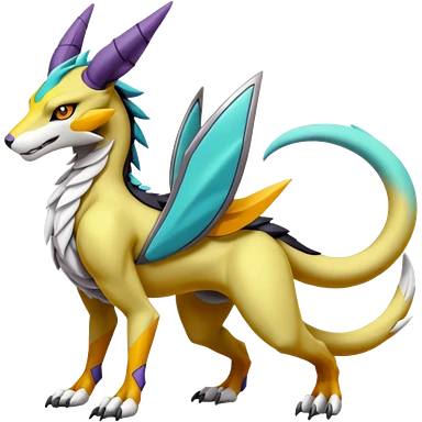 Colorful Futuristic Meloetta-Solgaleo-Raikou-Wargreymon-Sergal-Pokémon-Digimon-Fakémon-fusion-hybrid-creature emoji