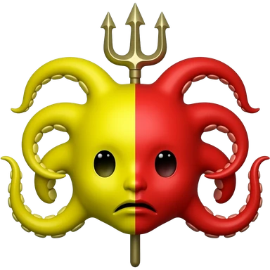 metà gialla e metà rossa obliqua nel mezzo e tre gambe dietro la testa della medusa a trinacria emoji