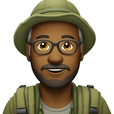 Icon for Ecotourism: a scenic landscape with lush green forests, a waterfall, and wildlife, such as birds or animals, with hiking trails and eco-friendly travel elements like a reusable water bottle. Transparent background. emoji
