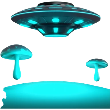 extraterrestrial futuristic otherworldly cyan bioluminescent neon-glowing aesthetic scenery flying saucers UFOs mushroom floating flying hovering object emoji