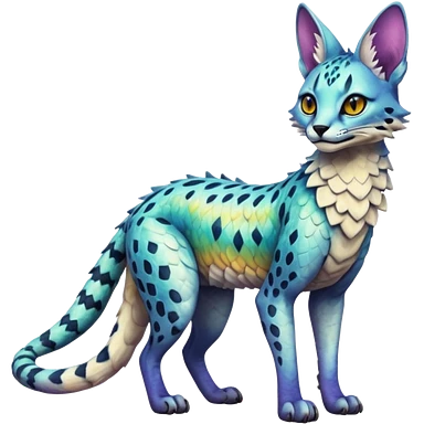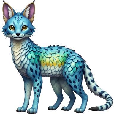 Epic scaley scaled iridescent complex detailed realistic aesthetic-scenic-Fakémon-Trico-Sergal-Serval-Vernid-creature emoji