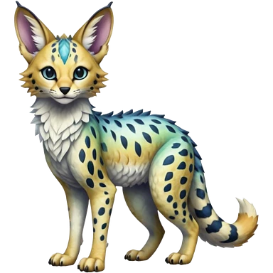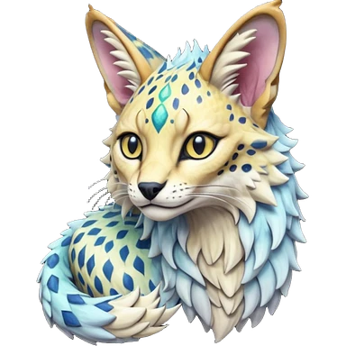Epic complex detailed realistic aesthetic-scenic-Fakémon-Trico-Sergal-Civet-Genet-Serval-Vernid-creature emoji