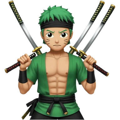Has a zoro de one piece con sus tres katanas más epico en pocision de ataque y estilo anime emoji
