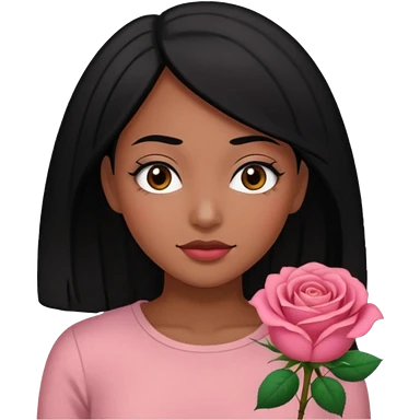 Black hair woman wearing rose top emoji