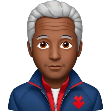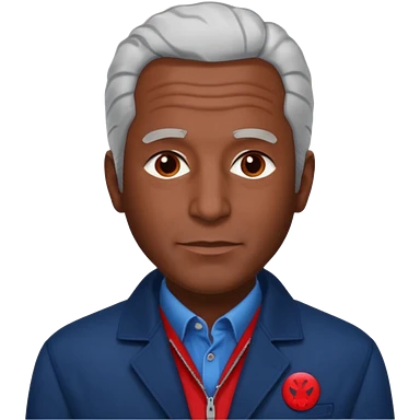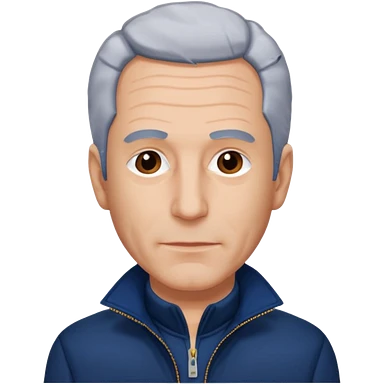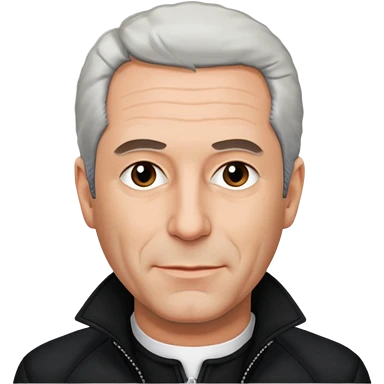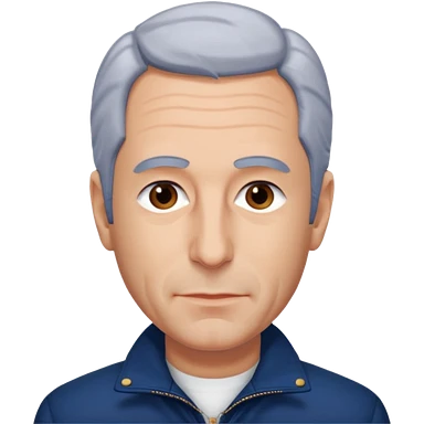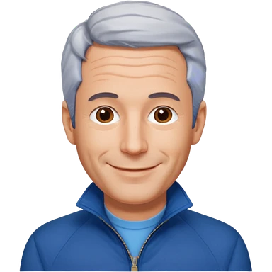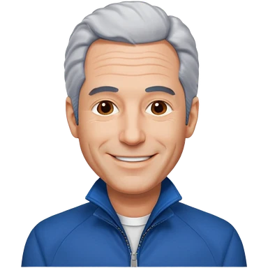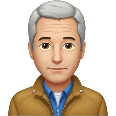 Jeffery Epstein with dark blue jacket and red logo emoji