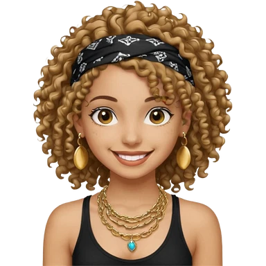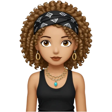 Baddie girl with black tank top curly hairss and bandana and jwellery emoji