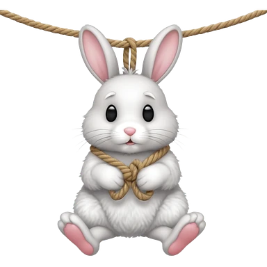 White realistic bunny with thick red ropes tightly wrapped around emoji