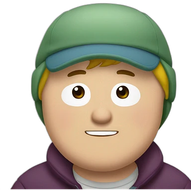 eric cartman (fat boy with white skin tone, blue and yellow poofball hat, red jacket, oval eyes, no nose and smile) emoji