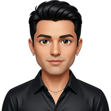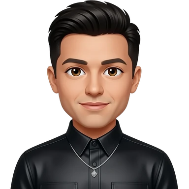Erik-Michael Estrada from O-Town with dark brown eyes, black hair, black metallic high neck shirt, necklace and earrings emoji