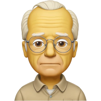 A 3D cartoon close-up of Grandpa Abe Simpson, yellow skin, bald head with side tufts of white hair, glasses, wrinkled face, beige shirt with collar, soft yellow lighting, cinematic Memoji-style portrait consistent with other Simpsons family members. emoji