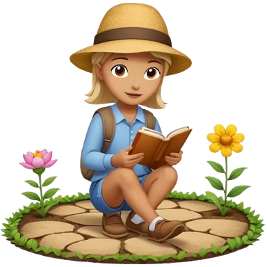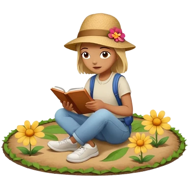 someone who's walking on a path and the person is reading a panel to learn about a flower. the person is redaing a panel which is on the ground emoji