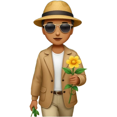 someone who's walking on a path and the person is reading a panel to learn about a flower emoji