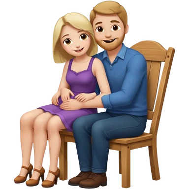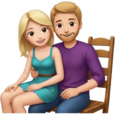 A woman sitting on a man's lap in a wooden chair face to face emoji