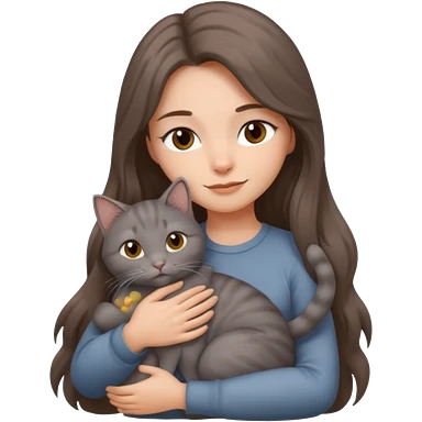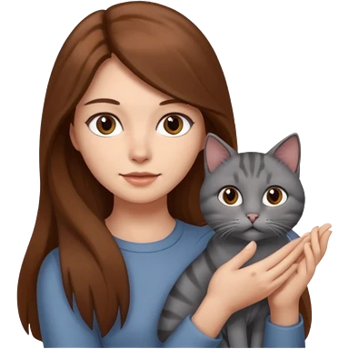 woman hug a gray cat, brown long hair emoji