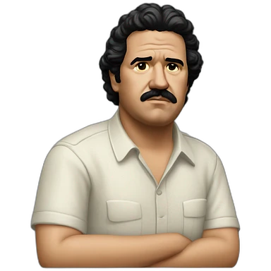 Pablo Escobar sitting on a sofa, smiling, apple style emoji emoji