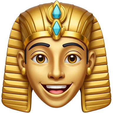 Discord emoji for "RA Silkroad", Ancient Egyptian theme, funny Pharaoh face laughing widely, cartoonish, colorful, shiny gold accents, small and clear, perfect for emoji use. emoji