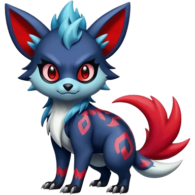 Colorful patterned esoteric shiny glowing scaly scary cool badass edgy Zorua-Absol-Zangoose-Salandit-fusion (full body) emoji