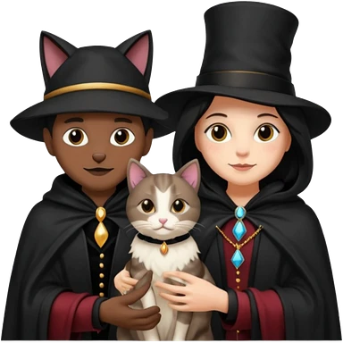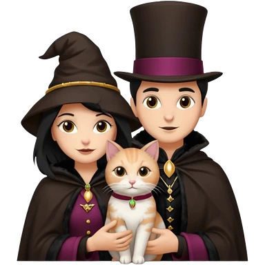 magician couple and their pet cat emoji