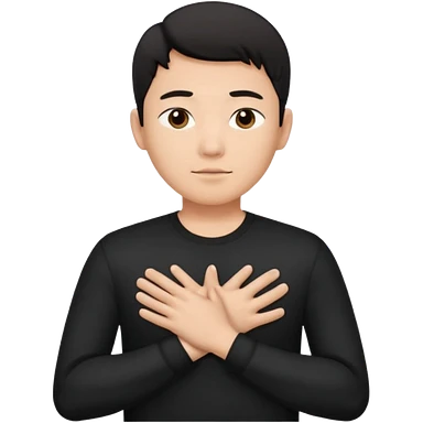 first asian man put his hands on his chest where his heart is, to showw howw he feeel emoji