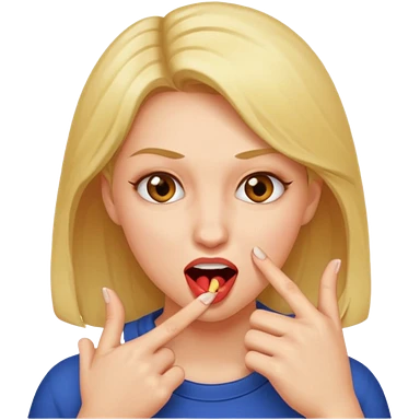 🙎🏻♀️ este emoji se tiene que estar mordiendo el segundo dedo, el que está a un lado del dedo, tiene que ser mujer