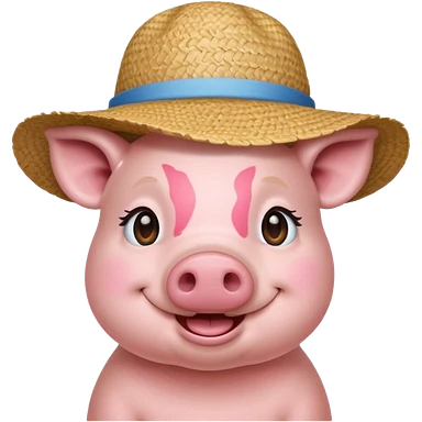 Farmer Pig – pink pig wearing straw hat and smiling emoji