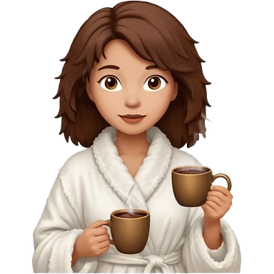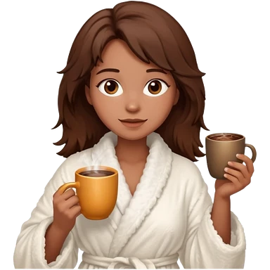{ "type": "human", "look": "fluffy robe woman, messy hair, holding cup of cocoa", "description": "a woman in a fluffy robe with messy hair, holding a cup of cocoa" } emoji