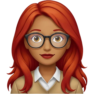 Una mujer con pelo rojo y lentes trigueña pelo largo emoji