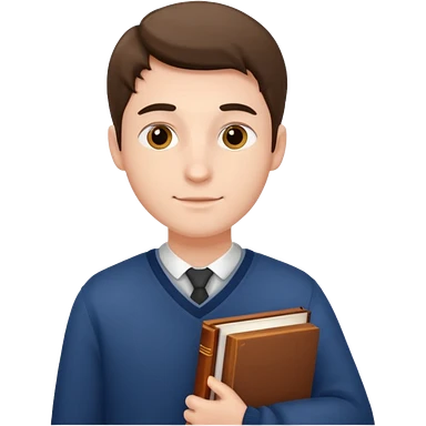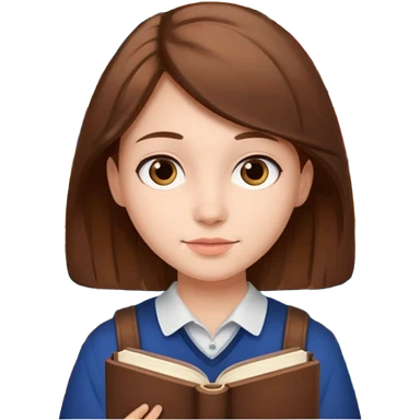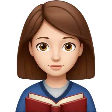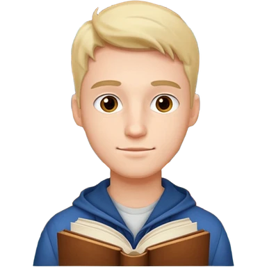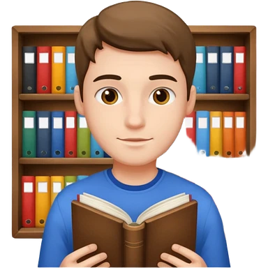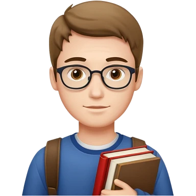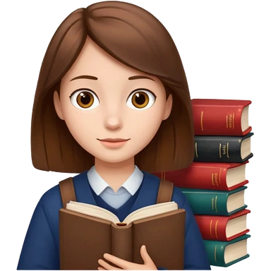 joven estudiante con todossus libros que son muchos, de piel blanca muy feliz y sonriente con un libro en sus manos emoji