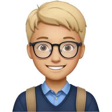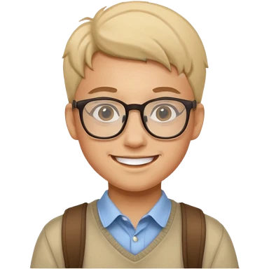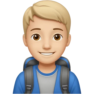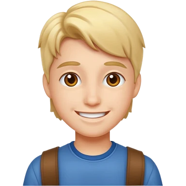estudiante de enseñanza media, alumno medianamente alto, tez blanca, de cabello rubio con rizos y cejas rubias emoji