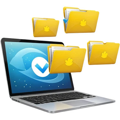 An open laptop with yellow folders containing data flying out. emoji