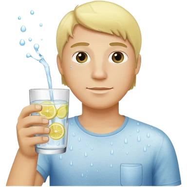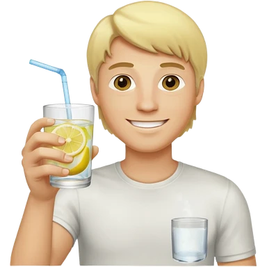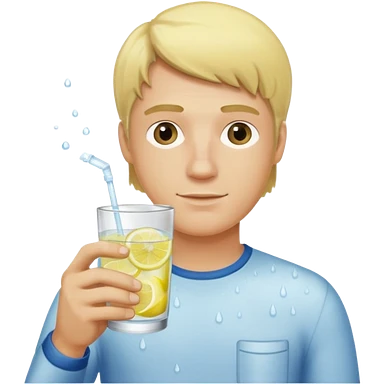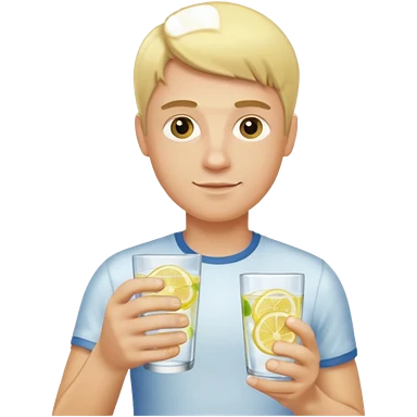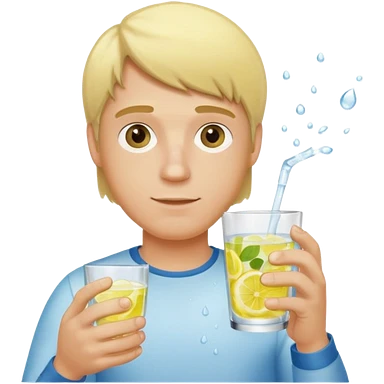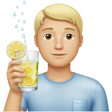 Ethereal glowing water bottle with floating lemon slice and sparkling creatine powder, surrounded by magical aura emoji | AI Emoji Generator