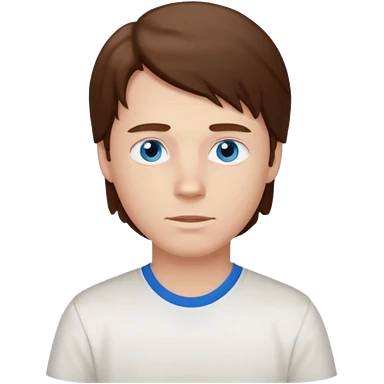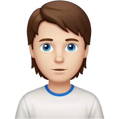 White boy with blue eyes and brown semi long hair with a White shirt emoji