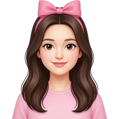 Eu quero uma carinha fofa sorrindo sem boca com olho fechado boxexinha rosada e um lacinho super fofo rosa na cabeça dele e a pele dele amarela emoji