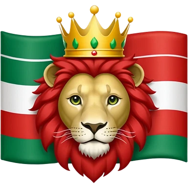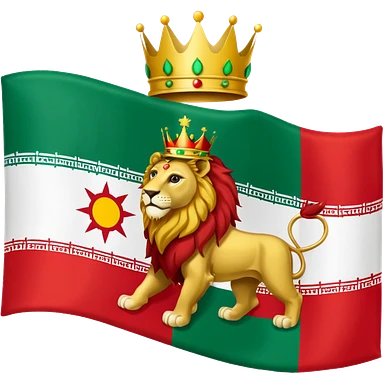 Please make me the flag of the lion and the sun with the crown of Iran, which is green from the top, white in the middle and red bottom. emoji