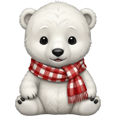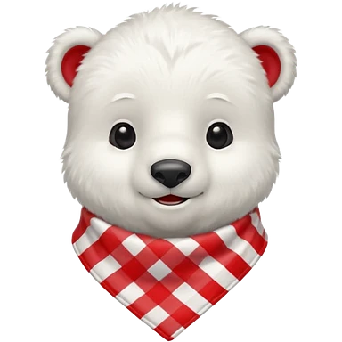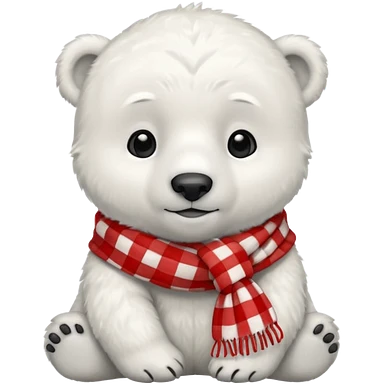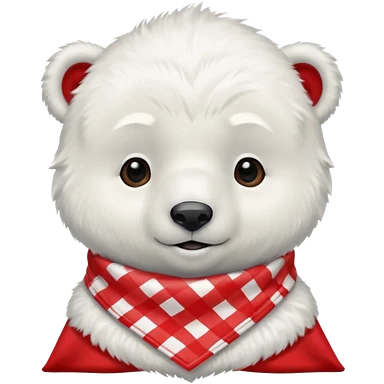 baby polar bear wearing a red and white checkered scarf emoji