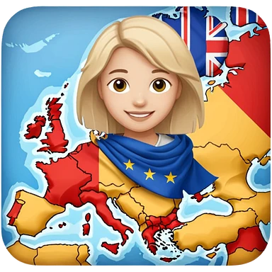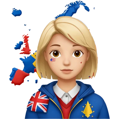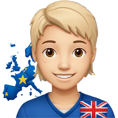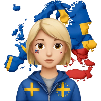 Europe styled student. Europe map with flags inside of the map is on the background emoji