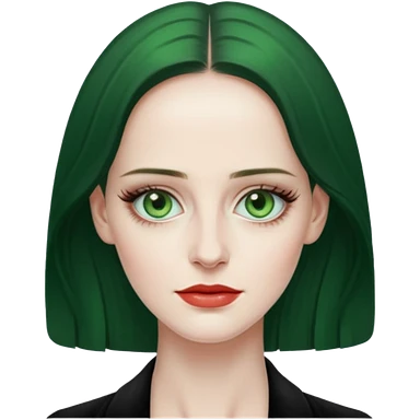 Eva Green with blonde hair, blue eyes, freckles, black shirt emoji