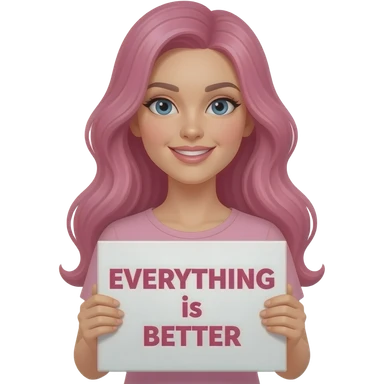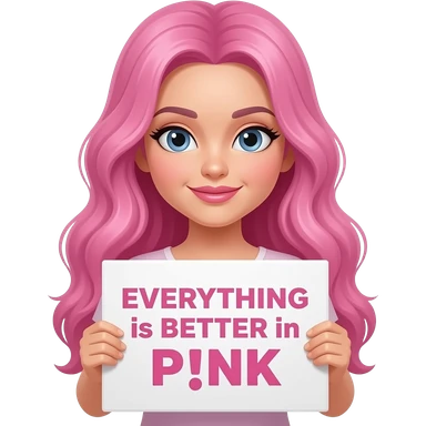 sexy girl with long pink hair holding a EVERYTHING is BETTER in P!NK sign emoji