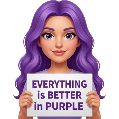 sexy girl with long purple hair holding a EVERYTHING is BETTER in PURPLE sign emoji