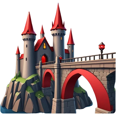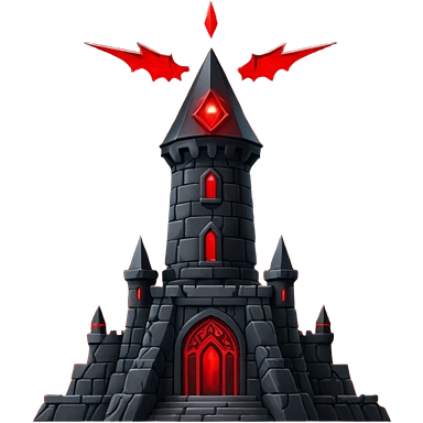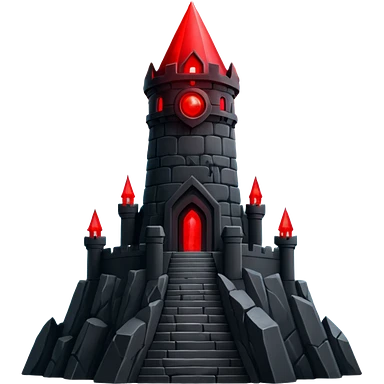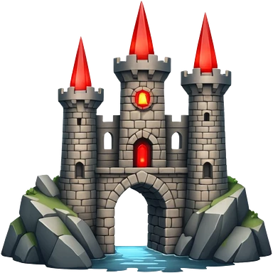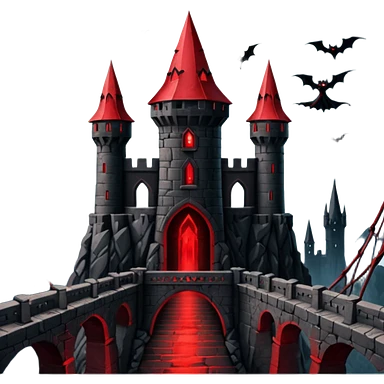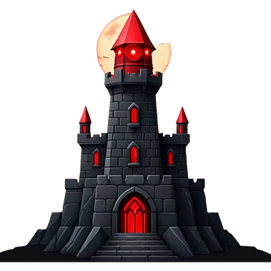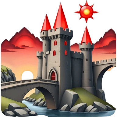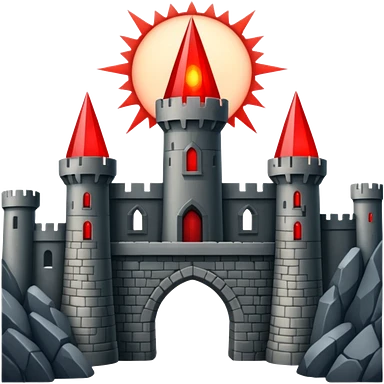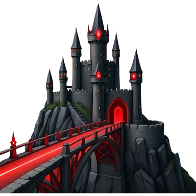 Evil Fortress witch Red Beacon shooting into sky and bridge, two towers very dark emoji