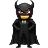 Create a dark-themed emoji of a demonic face with sharp, curved horns, glowing white eyes, an evil grin with large pointed fangs, and abstract flame-like patterns around the face. The background should be pure black. emoji