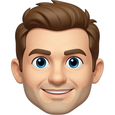 Larry Fine from The Three Stooges with blue eyes, brown curly hair with bang, light blue metallic shirt, white metallic suit jacket with bow tie emoji