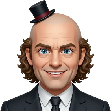 Evil man with a bald head but long curly sideburns and a tiny top hat emoji