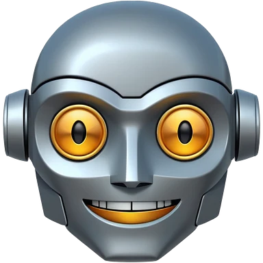 evil robot. Only its head. Very low details, just lines and colors, no need to draw in detail. Like an icon. Make it smile emoji