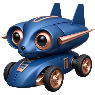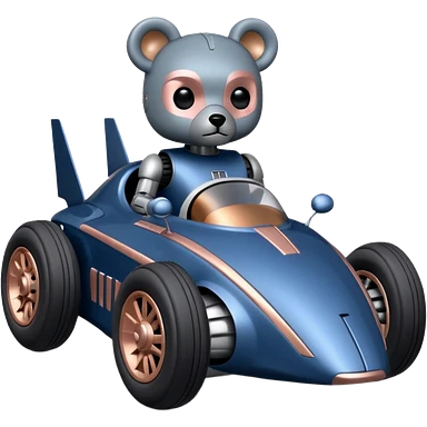 Space-weathered/Carbonized Metallic dark blue and rosegold-accented racing car for furry-faced evil alien scary robot teddy bear with rear spoiler (Star Wars style) emoji